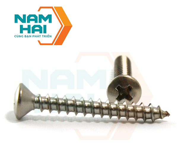 - Phần đầu vít: hình Oval có dập rãnh để vặn bằng tua vít hoặc dụng cụ chuyên dùng